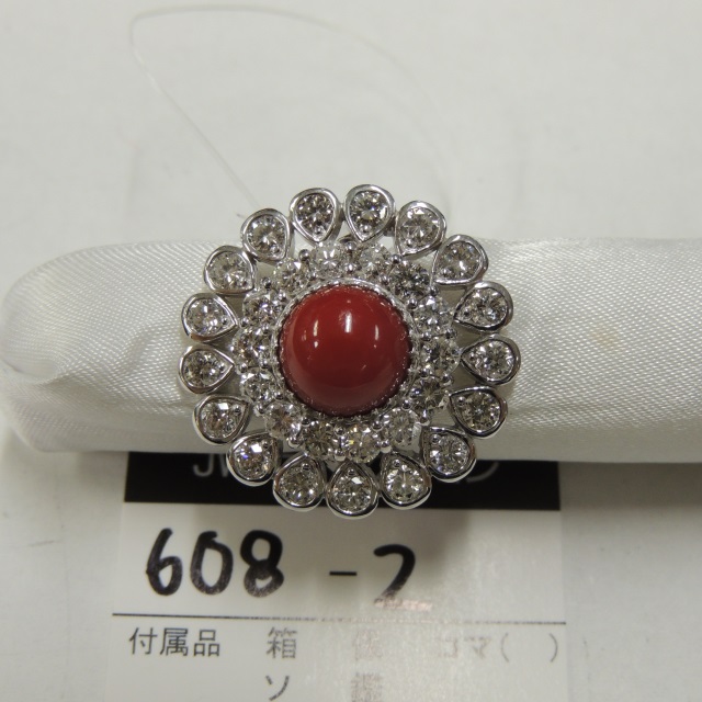リング サンゴ ダイヤ Pt900 13.50g 鑑 石目:S10.38 D0.85