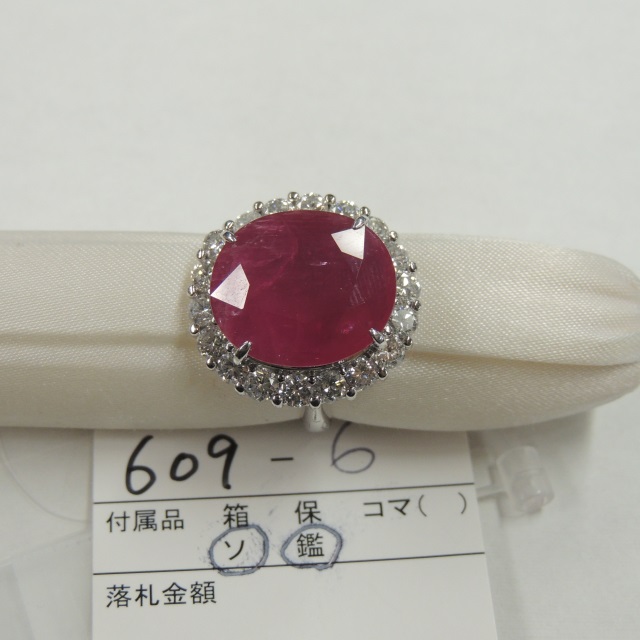 リング ルビー Pt900 18.20g 全宝鑑 CGLソ 石目:R15.08 D2.32