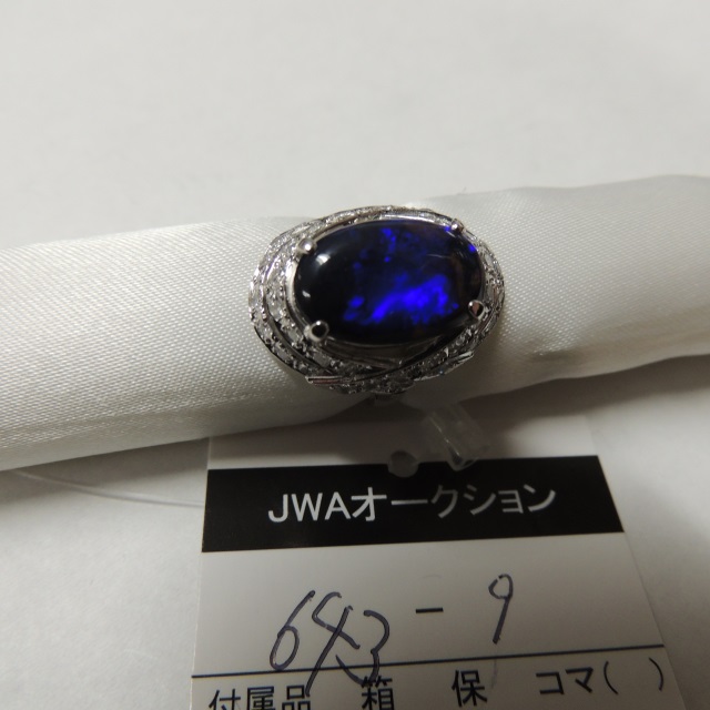 リング ブラックオパール ダイヤ Pt900 14.10g 石目:6.72 0.43