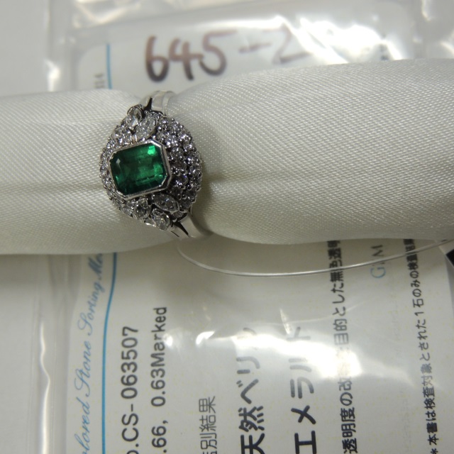 リング エメラルド ダイヤ Pt900 7.40g GRJソ 石目:0.66 0.63