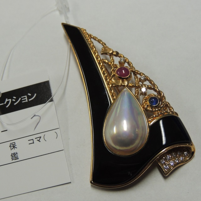 ブローチ パール オニキス ダイヤ K18 27.30g 石目:0.22