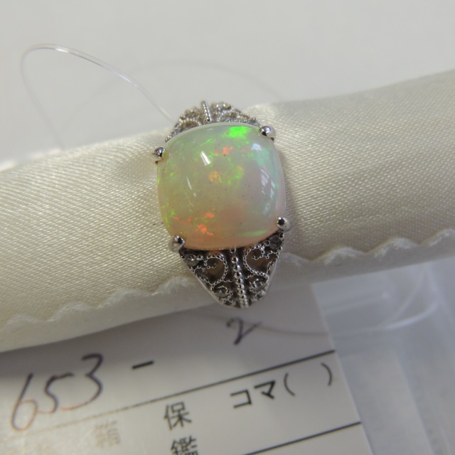 リング オパール ダイヤ K18WG 4.60g 中ソ 石目:3.93 0.08