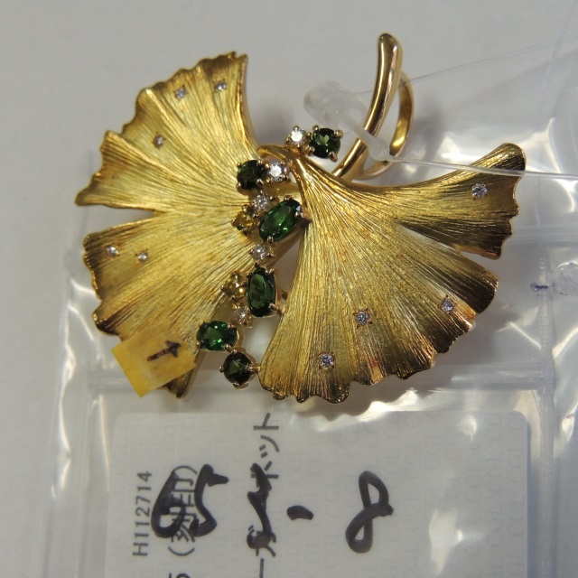 ブローチ ガーネット トルマリン ダイヤ K18 21.10g 中ソ 石目:0.74 0.50 0.25