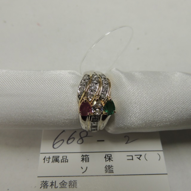 リング エメラルド ルビー ダイヤ Pt900/K18 9.30g 石目:E0.17 R0.22 D0.515