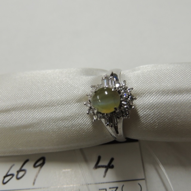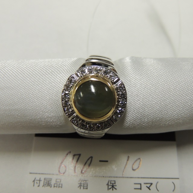 リング クリソベリルキャッツ ダイヤ Pt900 7.10g 石目:3.35 0.17