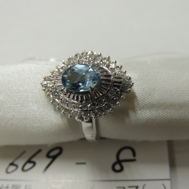 リング アクア ダイヤ Pt900 5.30g 石目:2.75 0.07