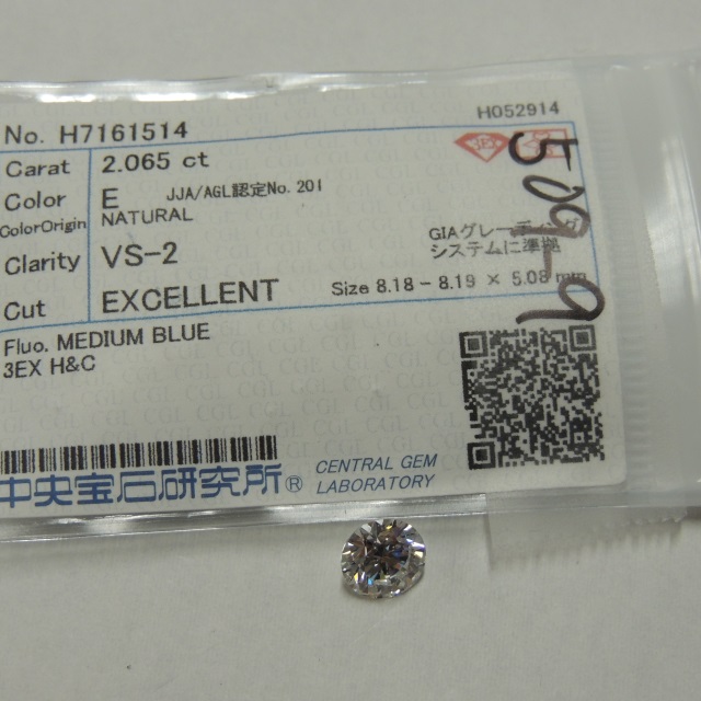 ルース ダイヤ E/VS2/3EX 中ソ 石目:2.065