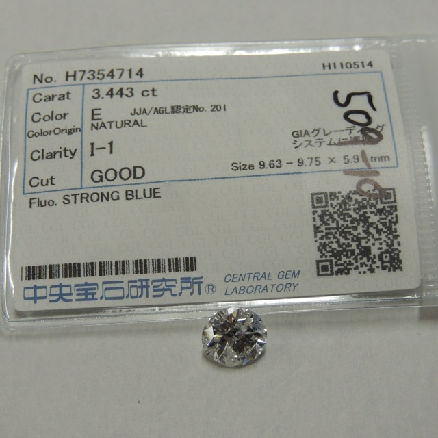 ルース ダイヤ E/I1/GOOD 中ソ 石目:3.443