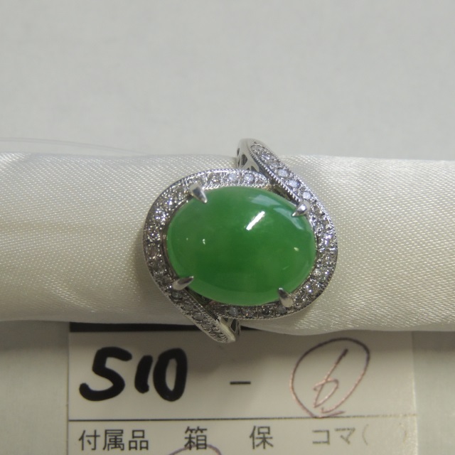 リング ヒスイ 透明樹脂を認む Pt900 11.80g ソ 石目:6.65 0.44