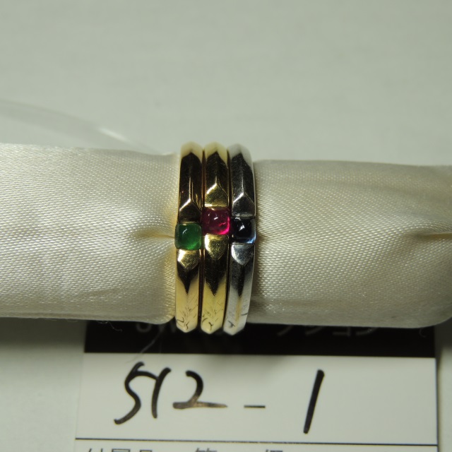 リング エメラルド サファイヤ ルビー K18 10.10g 石目:S0.27 R0.28 E0.18