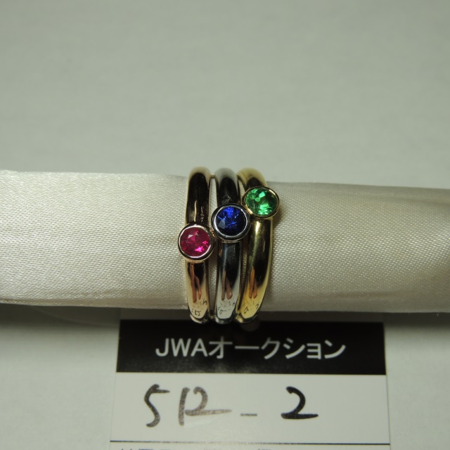 リング エメラルド サファイヤ ルビー Pt900/K18 12.00g 石目:R0.20 E0.25 S0.32