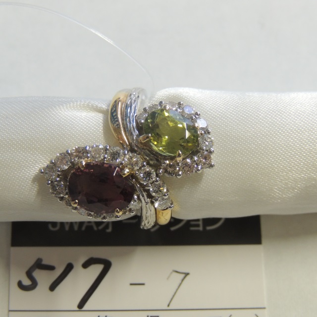 リング トルマリン Pt900/K18 13.60g 鑑 石目:2.14 FD0.192