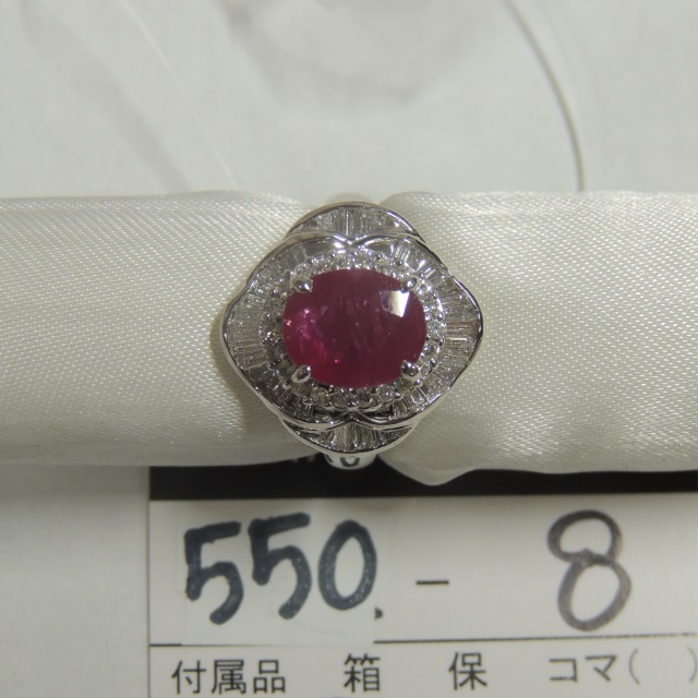 リング ルビー Pt900 8.80g GRJソ 石目:2.15 0.64