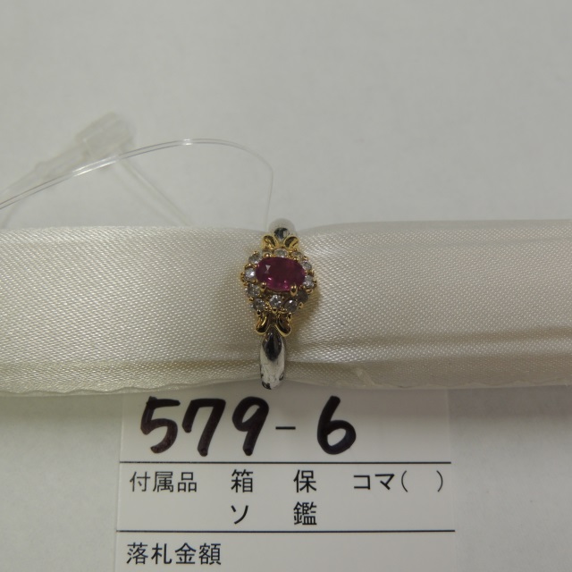 リング ルビー Pt900/K18 3.50g 石目:R0.30 FD0.18