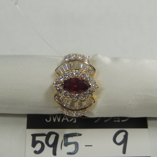 リング ルビー K18 13.10g 石目:0.91 1.08 D0.69