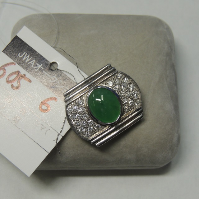 ブローチ ヒスイ (金具=K14WG) Pt900 13.80g 中ソ 石目:FD1.07