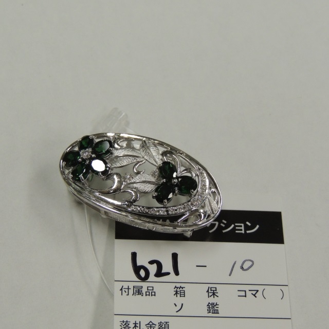 帯留 グリーンガーネット ダイヤ K18WG 11.20g 鑑 石目:3.65 0.185