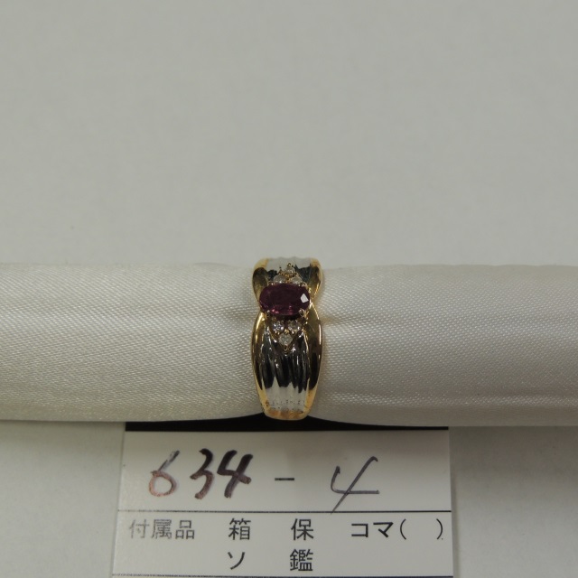 リング 赤石 K18/Pt900 3.50g 石目:FD0.07