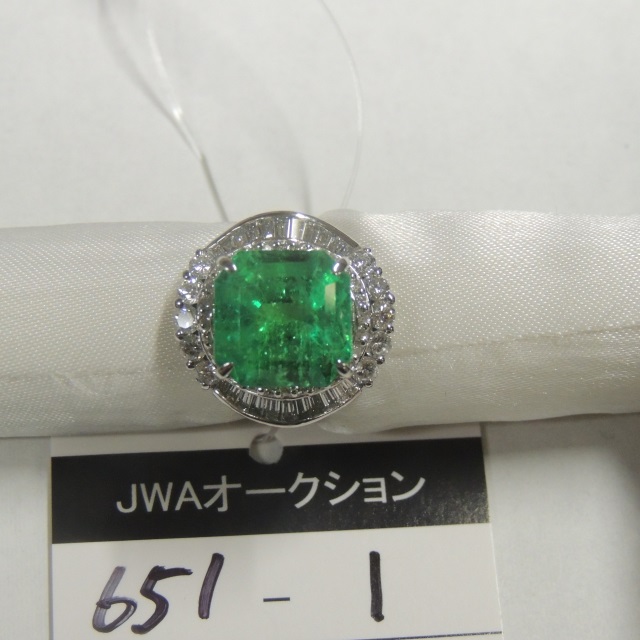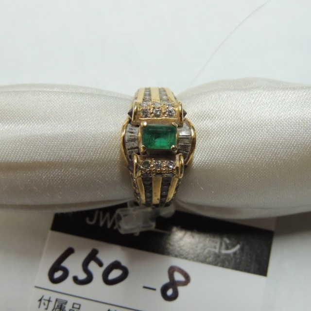 リング エメラルド ダイヤ Pt900 12.70g 中鑑 石目:6.19 D1.33