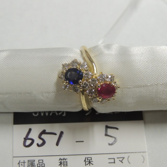 リング ルビー サファイア K18 6.00g 石目:R0.52 S0.46 D0.83