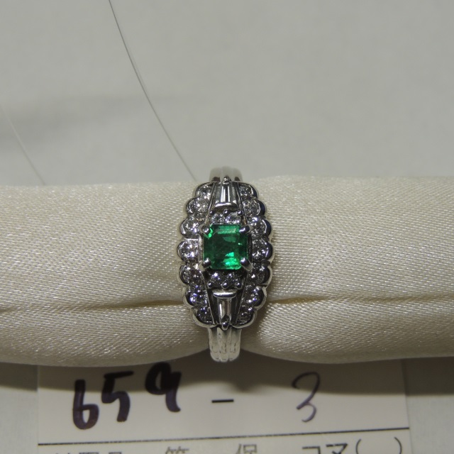 リング エメラルド Pt900 3.90g 石目:E0.17 FD0.09