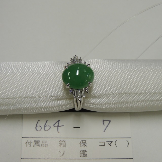 リング ヒスイ ダイヤ Pt900 14.20g 石目:5.136 3.160
