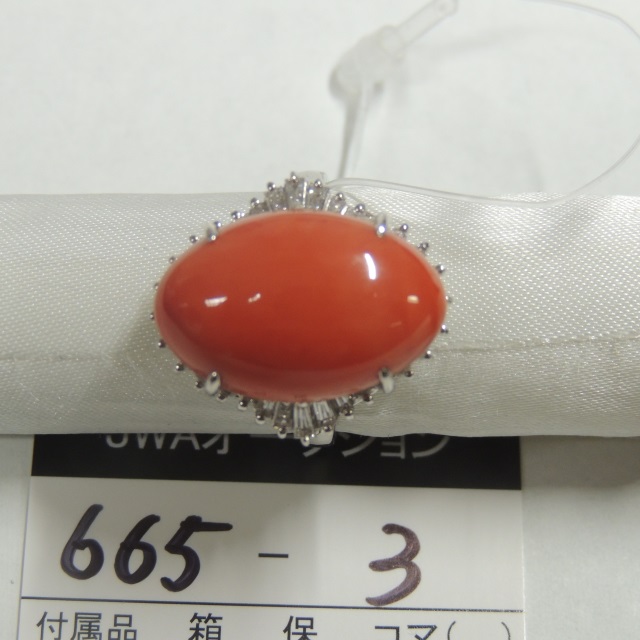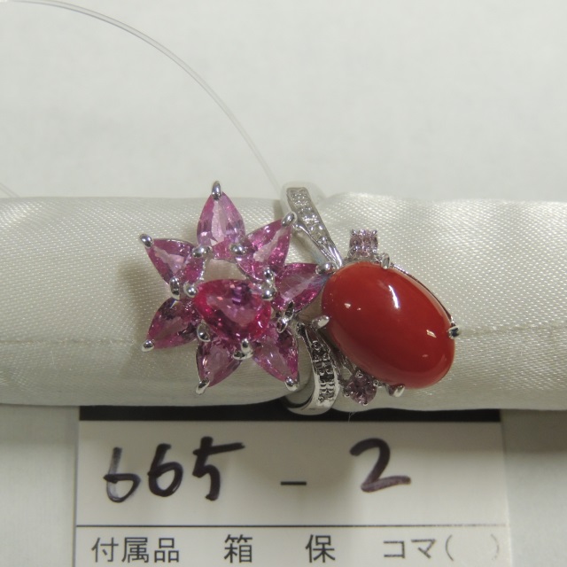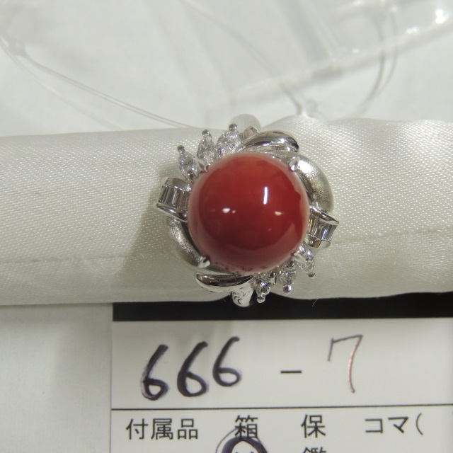 リング サンゴ ダイヤ 12.1㎜ Pt900 13.00g GRJソ 石目:0.43