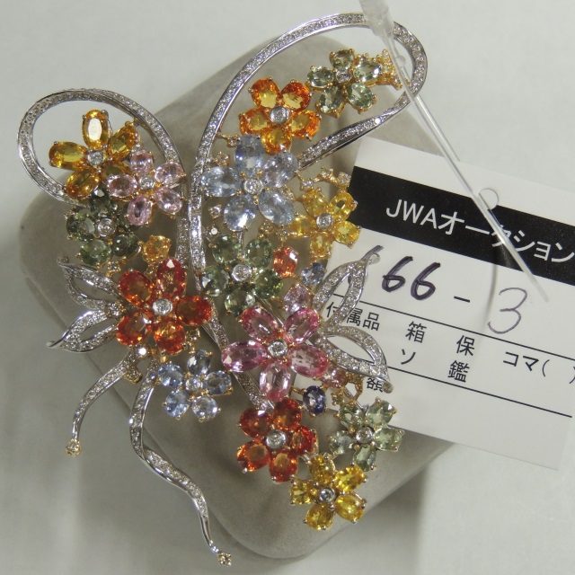 ブローチ マルチサファイア ダイヤ K18WG/K14 36.60g