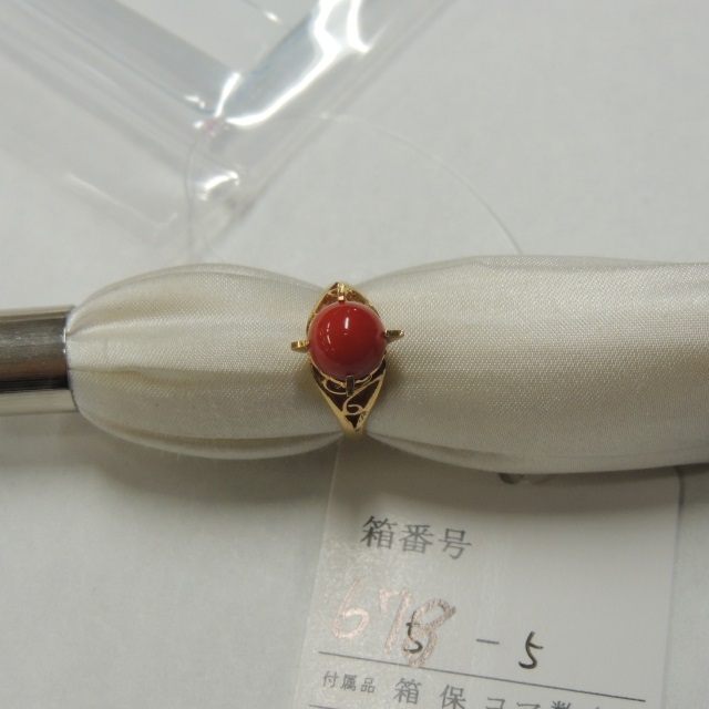 リング 丸玉サンゴ(約12mm) K18 5.90g ソ