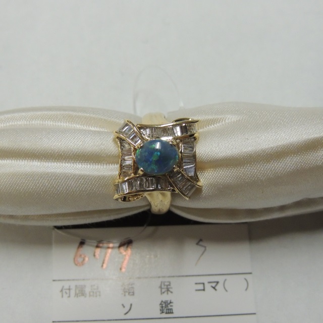 リング ブラックオパール ダイヤ 18K 5.40g 石目:0.9 0.88