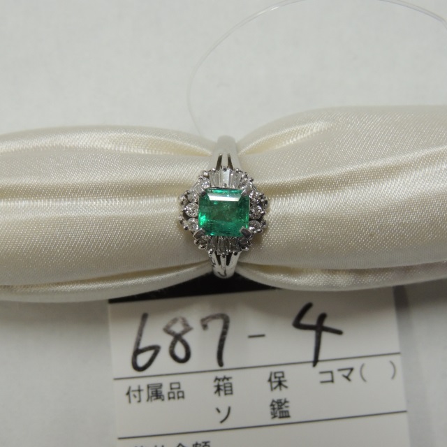 リング エメラルド Pt900 5.40g 石目:0.87 D0.33