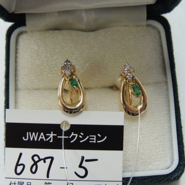 イヤリング エメラルド K18 6.70g 石目:E0.20 D0.24