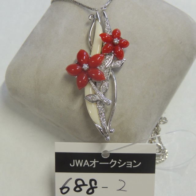 ネックレス 珊瑚 象牙 ダイヤ K18 17.70g 石目:0.47