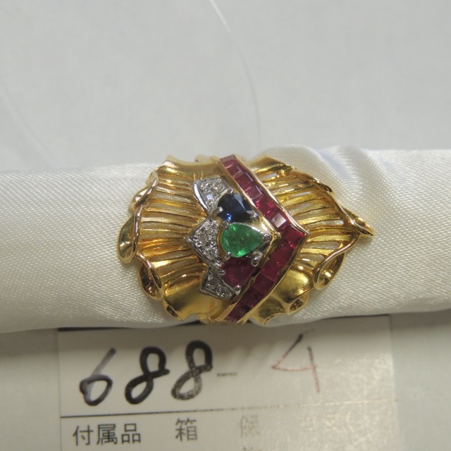 リング エメラルド サファイヤ ルビー ダイヤ K18/Pt900 7.60g 石目:1.14 0.22 0.22 0.04