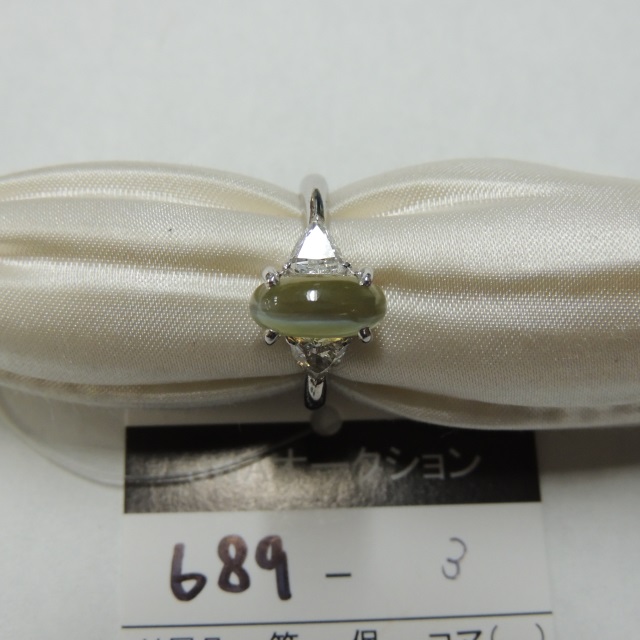 リング クリソベリルキャッツアイ ダイヤ Pt900 7.10g 石目:4.15 0.62