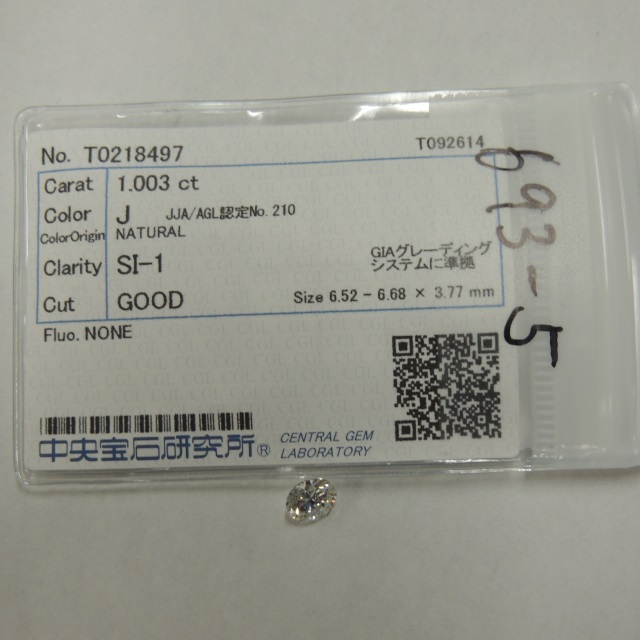ルース ダイヤ J-SI1-G-None 中ソ 石目:1.003