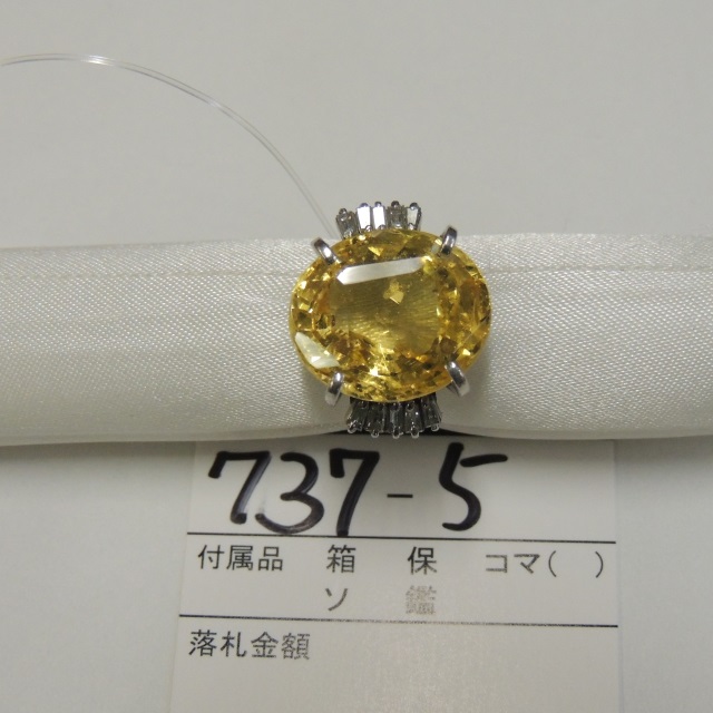 リング シトリン Pt900 11.20g 石目:0.35 D0.63