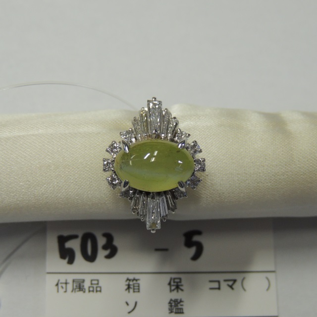 リング ヒスイ ダイヤ Pt900 12.20g 中宝ソ 石目:H7.92 D1.02