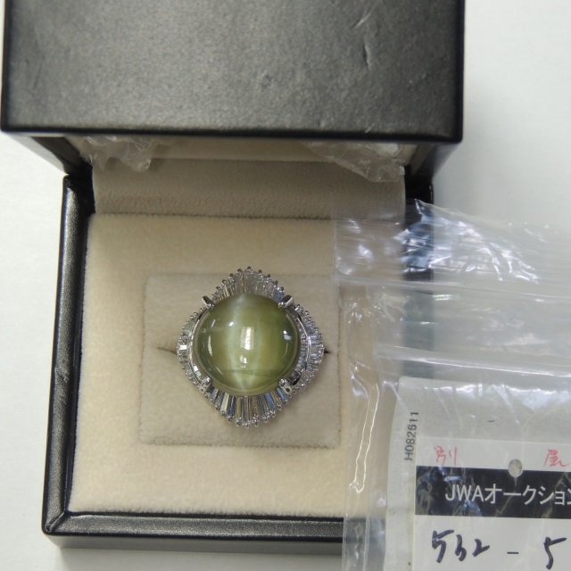 リング クリンベリル キャッツアイ Pt900 25.20g 中ソ 石目:45.03 D2.851