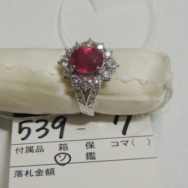リング ルベライト Pt900 16.80g 石目:PT12.89 FD0.41