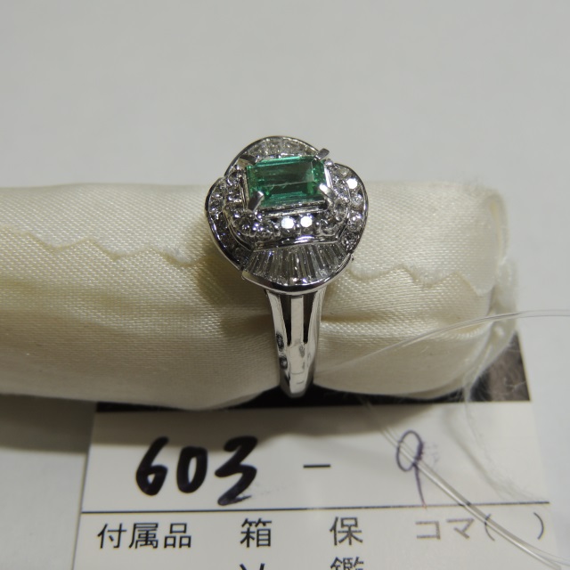 リング エメラルド Pt900 7.50g 石目:E0.46 D0.85