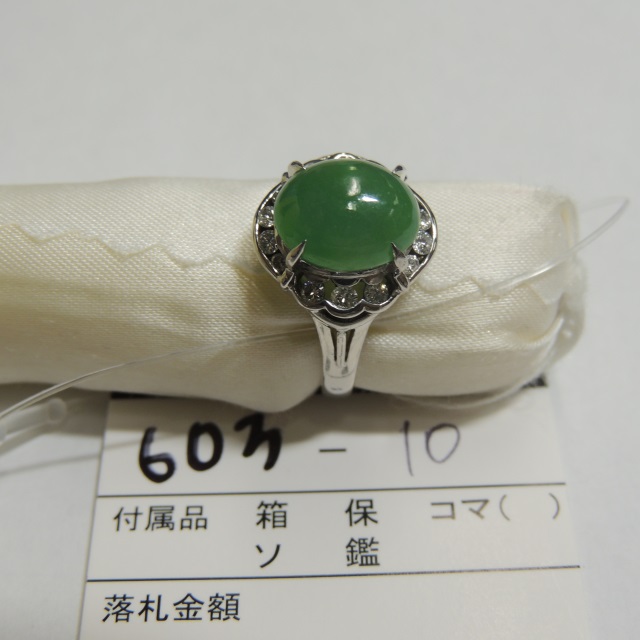 リング ヒスイ Pt900 7.30g 石目:4.48 D0.30