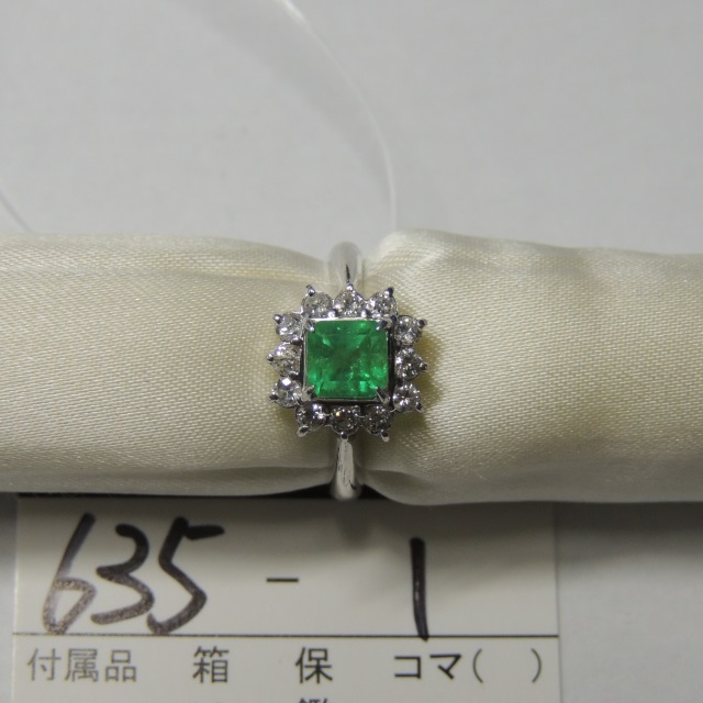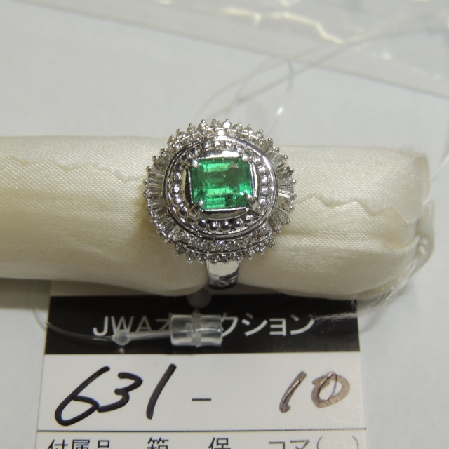 リング エメラルド ダイヤ Pt900 6.20g 石目:E0.94 D0.68