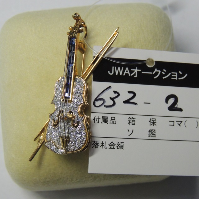 ブローチ バイオリン型 サファイア ダイヤ K18 11.30g 石目:1.00 0.85