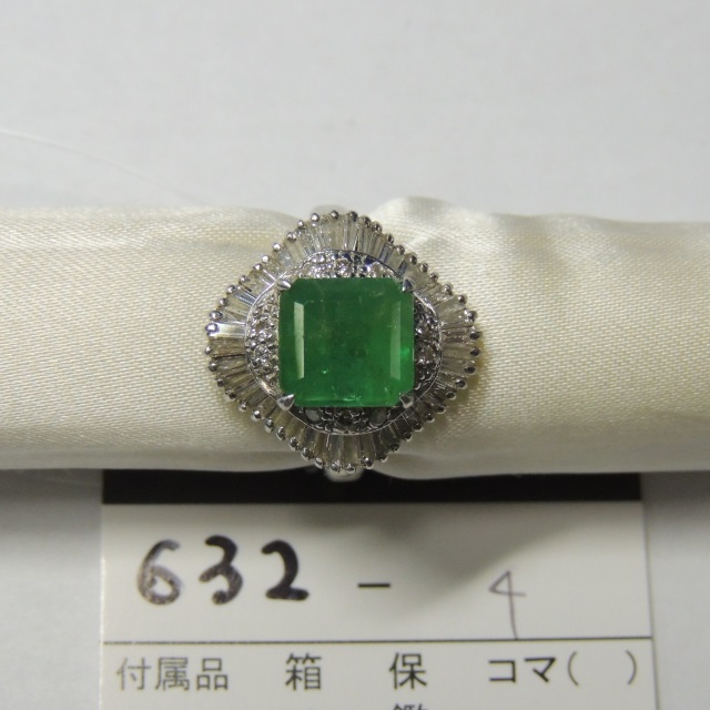 リング エメラルド ダイヤ Pt900 7.20g 石目:E2.68 D1.00