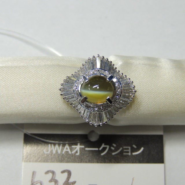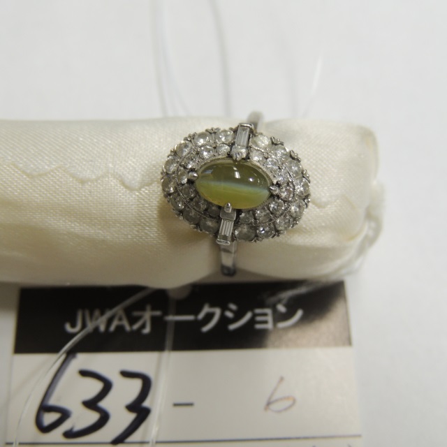 リング クリソベリルキャッツ ダイヤ Pt850 5.20g 中宝ソ