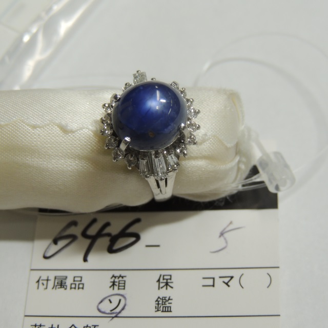 リング スターサファイア ダイヤ Pt900 9.40g 中宝ソ 石目:SS10.45 FD0.35