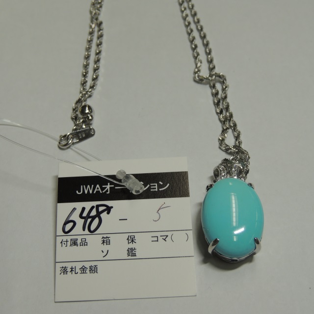 ネックレス トルコ石 ダイヤ K18WG 29.10g 石目:24.47 0.14