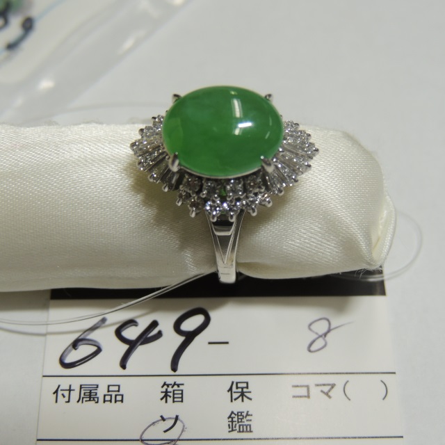 リング ヒスイ ダイヤ Pt900 7.80g 石目:1.85 0.52