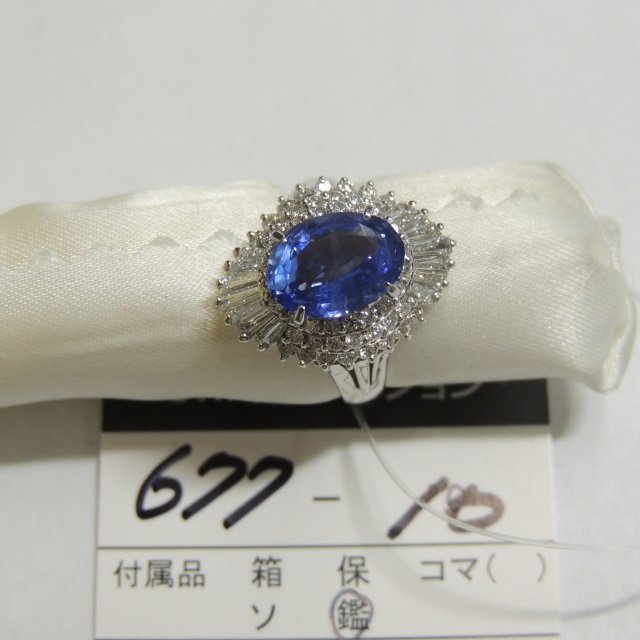 リング 非加熱保証 サファイア Pt900 10.60g GRJソ 石目:S4.88 D0.64